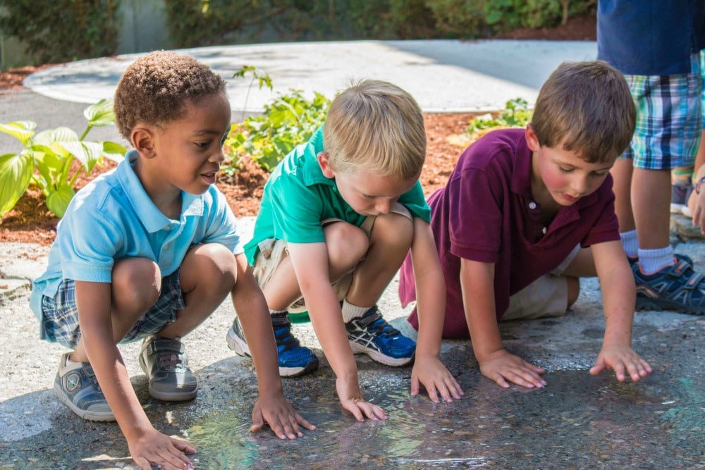 3. Teaching Outdoors: According to Rao, this is an “incredible game changer.” He stated that the most effective learning is based on what’s going on in the real world. He showed a photo of Fessenden’s Pre-K boys playing with the water element of their experiential playground. “Body language. That’s one of the things I’m looking at as a psychologist,” he explained. In reference to the three boys pictured below, he exclaimed, “I think you would have to put three screens in front of these boys to get this reaction. They’re touching the water, they feel it, there’s a true sensory experience that’s happening. That’s how learning takes place. Your senses light up when you’re outdoors.” Dr. Rao encouraged parents to inquire about schools’ policies about going outside for lessons.
